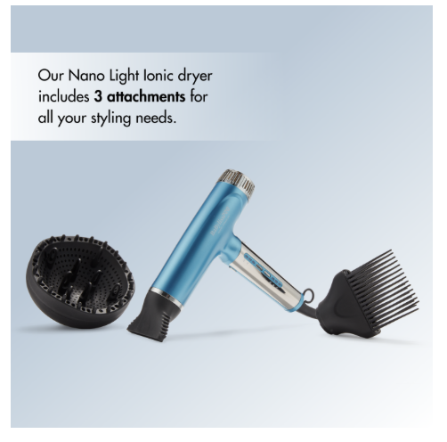 • Includes a cool-to-touch concentrator nozzle, straightening pic with curved teeth, and extra-deep contoured diffuser