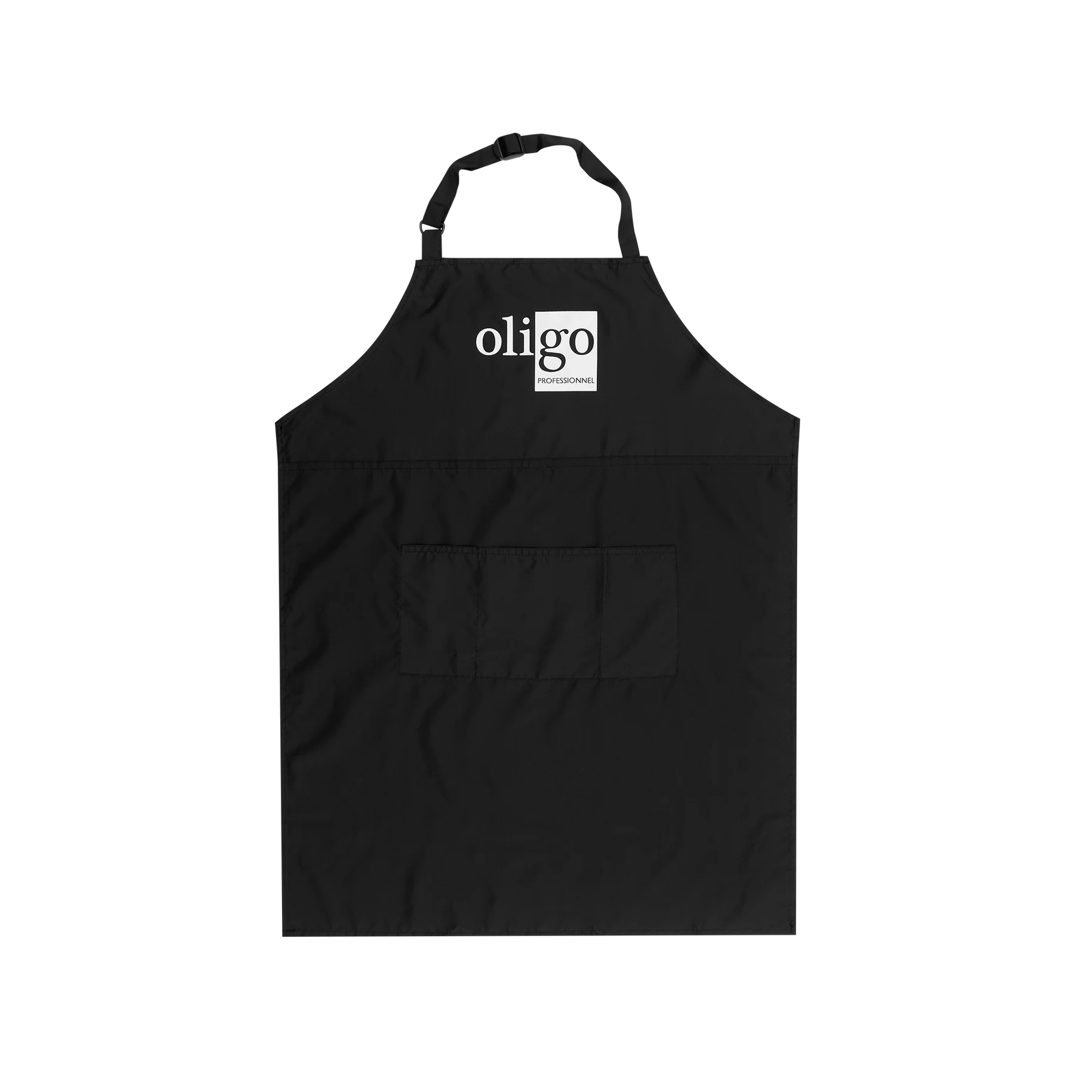 Black technical apron with 3 pockets made from water resistant polyester, adjustable, waist ties and lightweight.