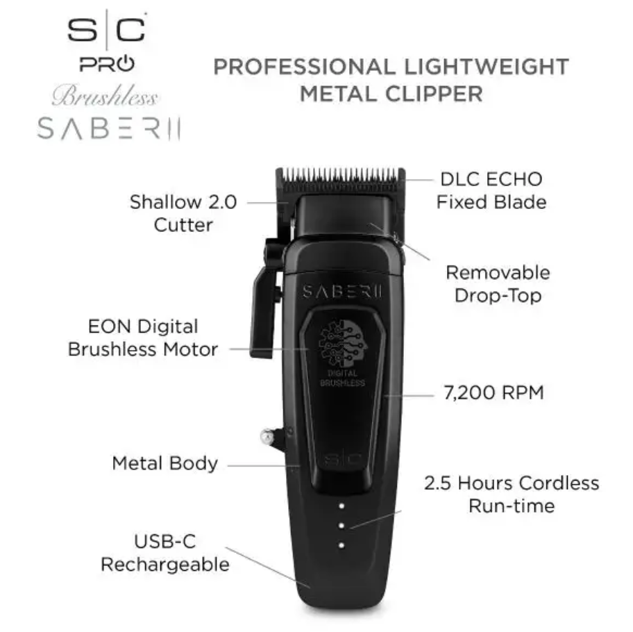 • StyleCraft SABER 2 CLIPPER – PROFESSIONAL CORDLESS MODULAR HAIR CLIPPER WITH HIGH-TORQUE DIGITAL BRUSHLESS MOTOR IN BLACK