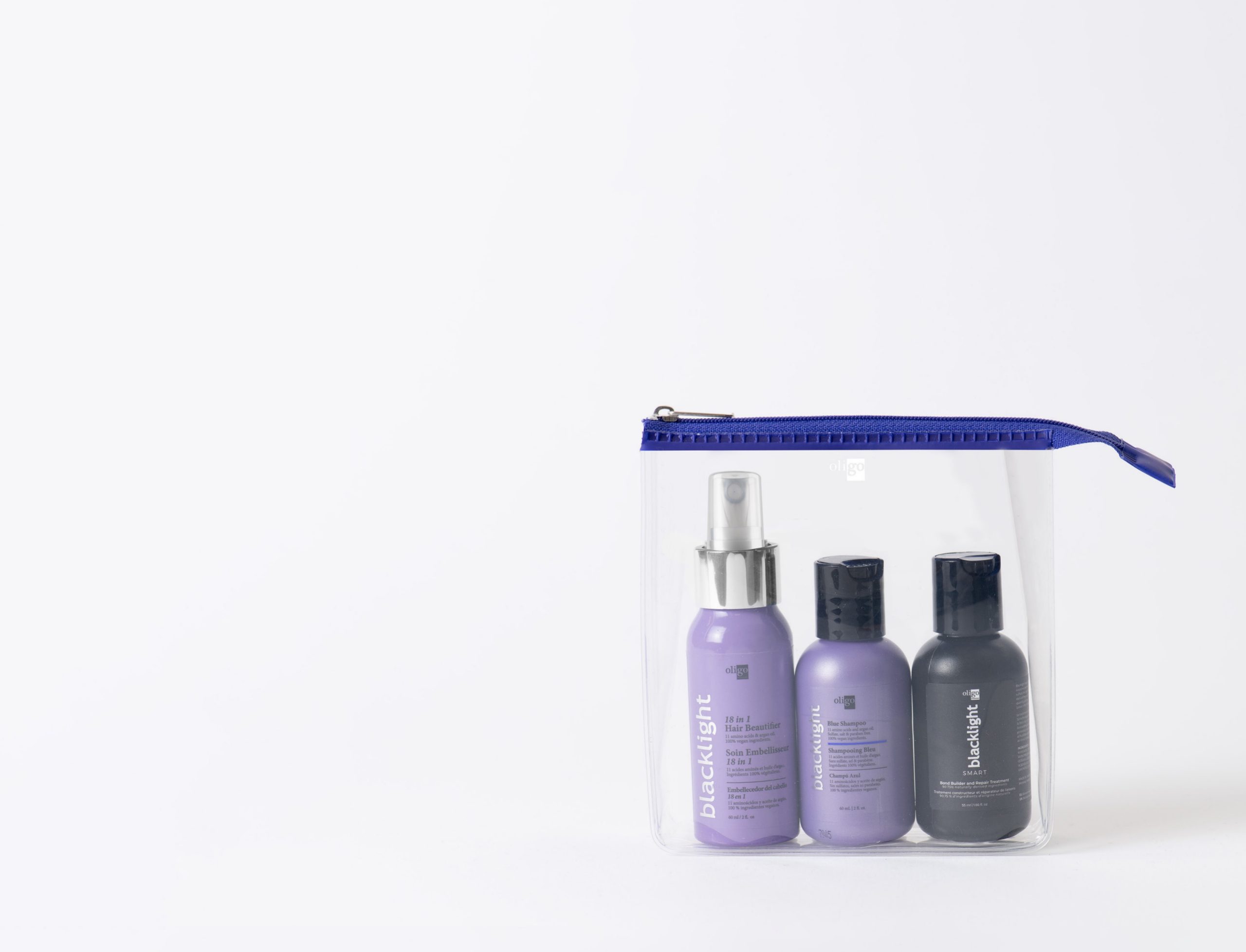 Perfect as a travel kit or starter kit, experience toning and repairing your hair with 3 essentials Blacklight products. The Blue edition is tailored for brunettes and dark blondes looking to neutralize orange tones, while the Violet edition is ideal for blondes aiming to counteract yellow tones.
